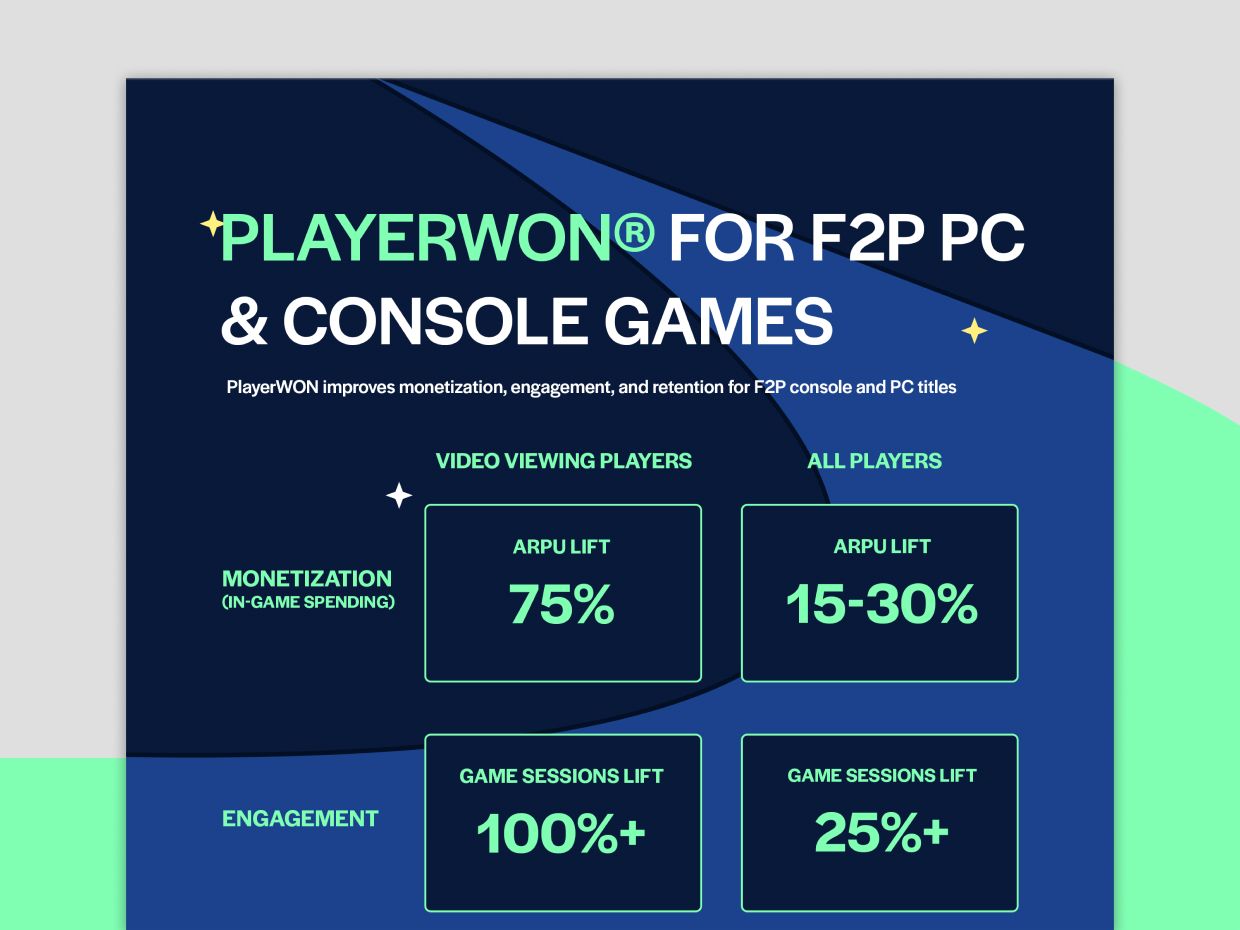 Explore the impact of PlayerWON in free-to-play PC and console games with our infographic. Discover how rewarded video experiences contribute to ARPU li...